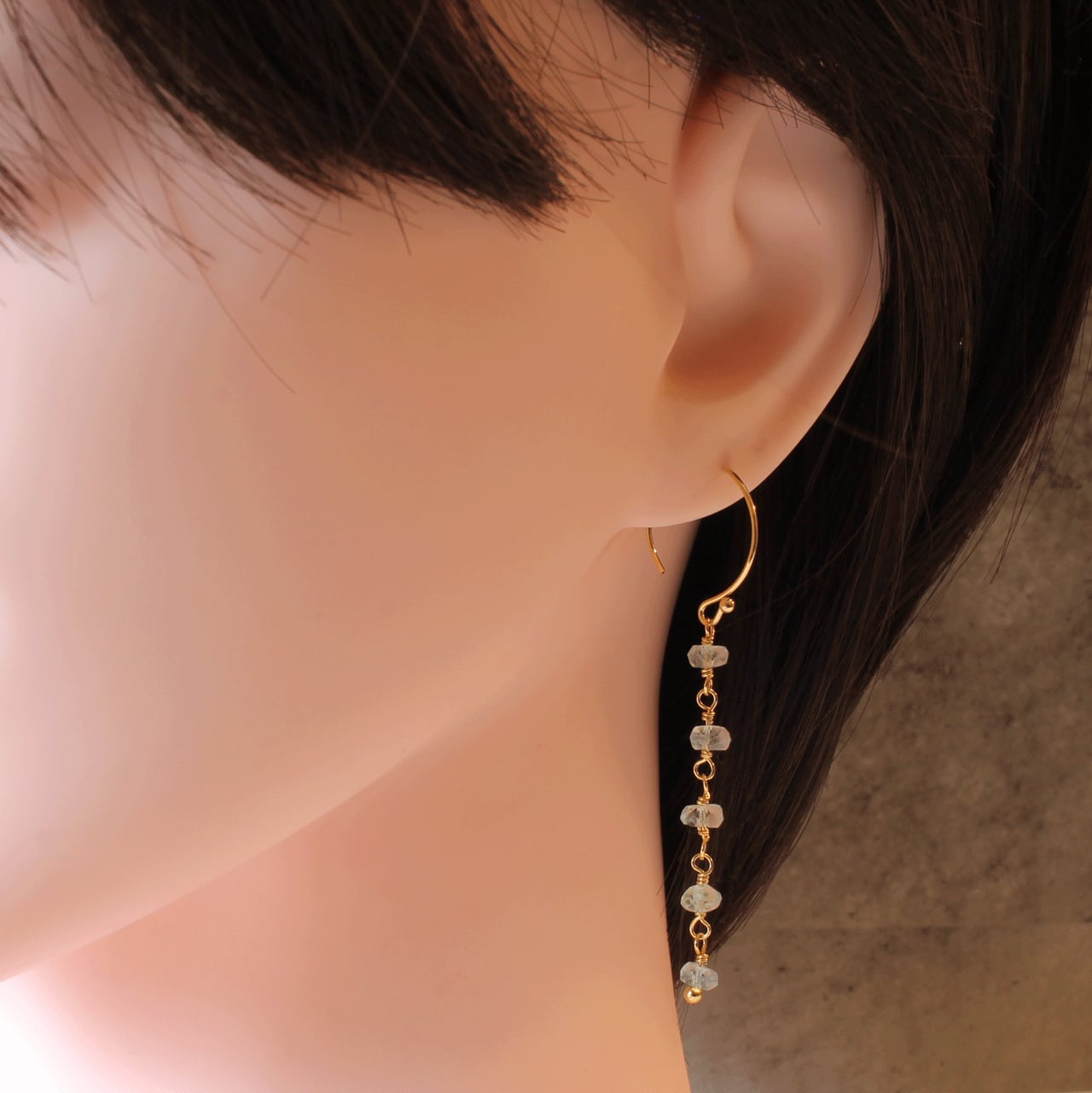 使用している天然石は、ボタンカットの華奢なアクアマリン。