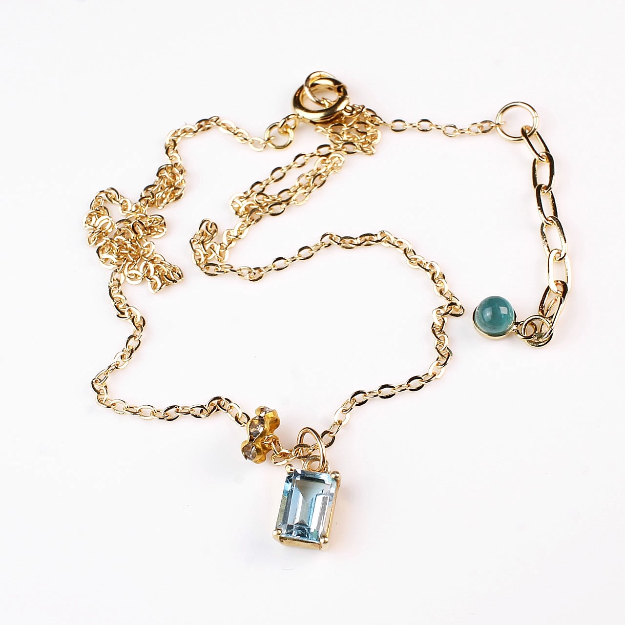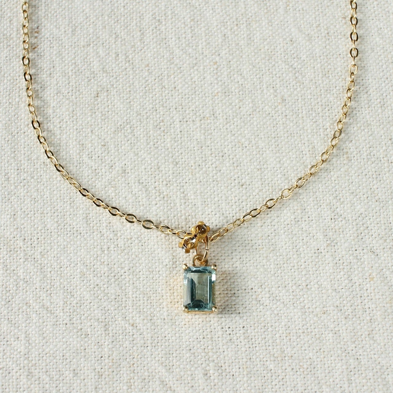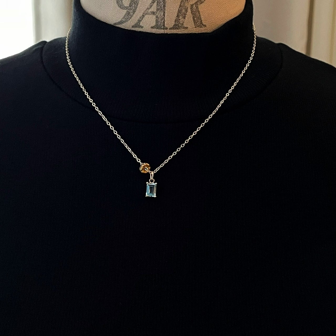 まるで澄み渡る青空をそのまま閉じ込めたかのような、レクタングルのスカイブルートパーズのネックレス。