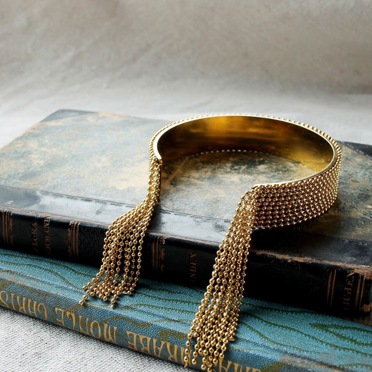 【手元に華やかな動きを】タッセル カフバングル ブレスレット ゴールド