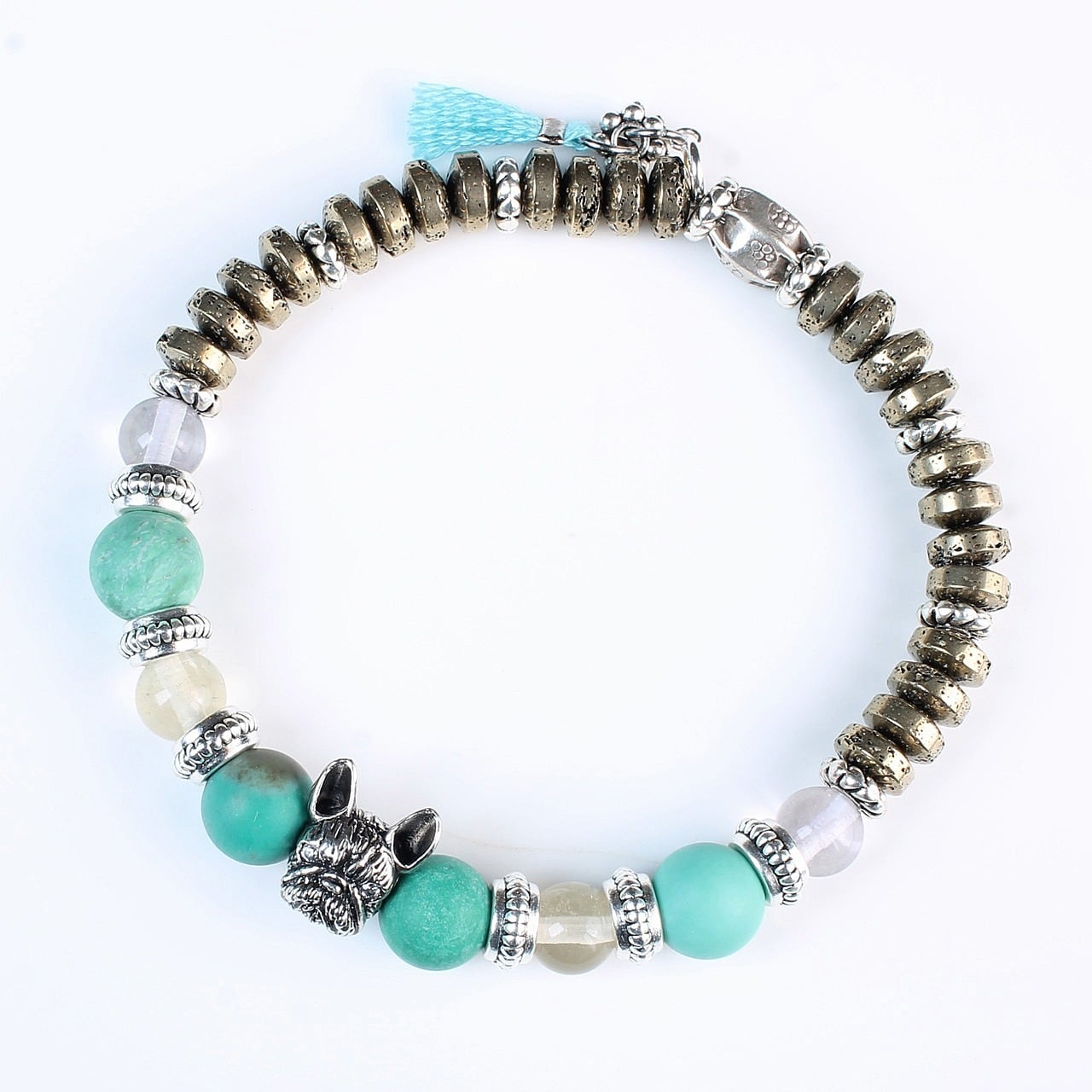 可愛らしいフレンチブルドッグのような顔の犬のモチーフが中央で輝く、犬好きにはたまらないブレスレット。