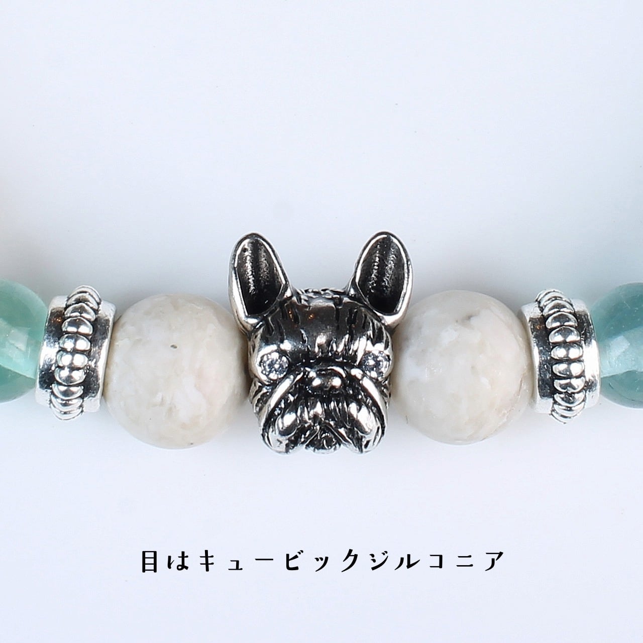 可愛らしいフレンチブルドッグのような顔の犬のモチーフが中央で輝く、犬好きにはたまらないブレスレット。