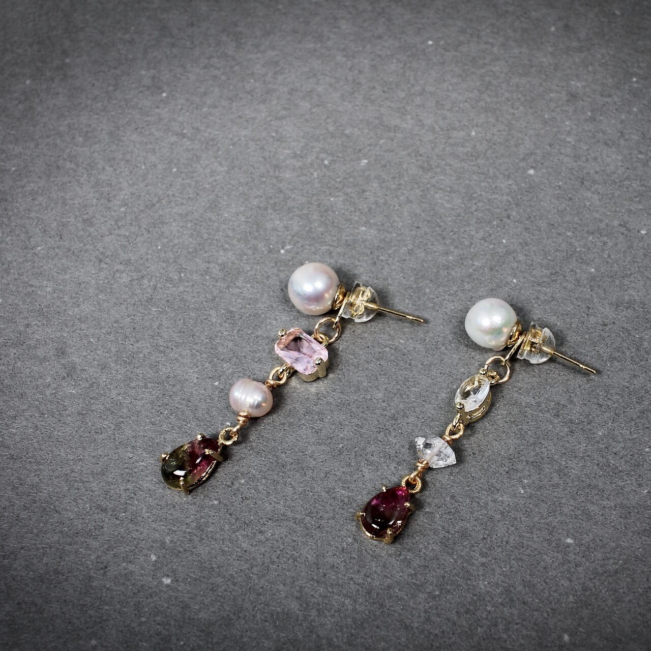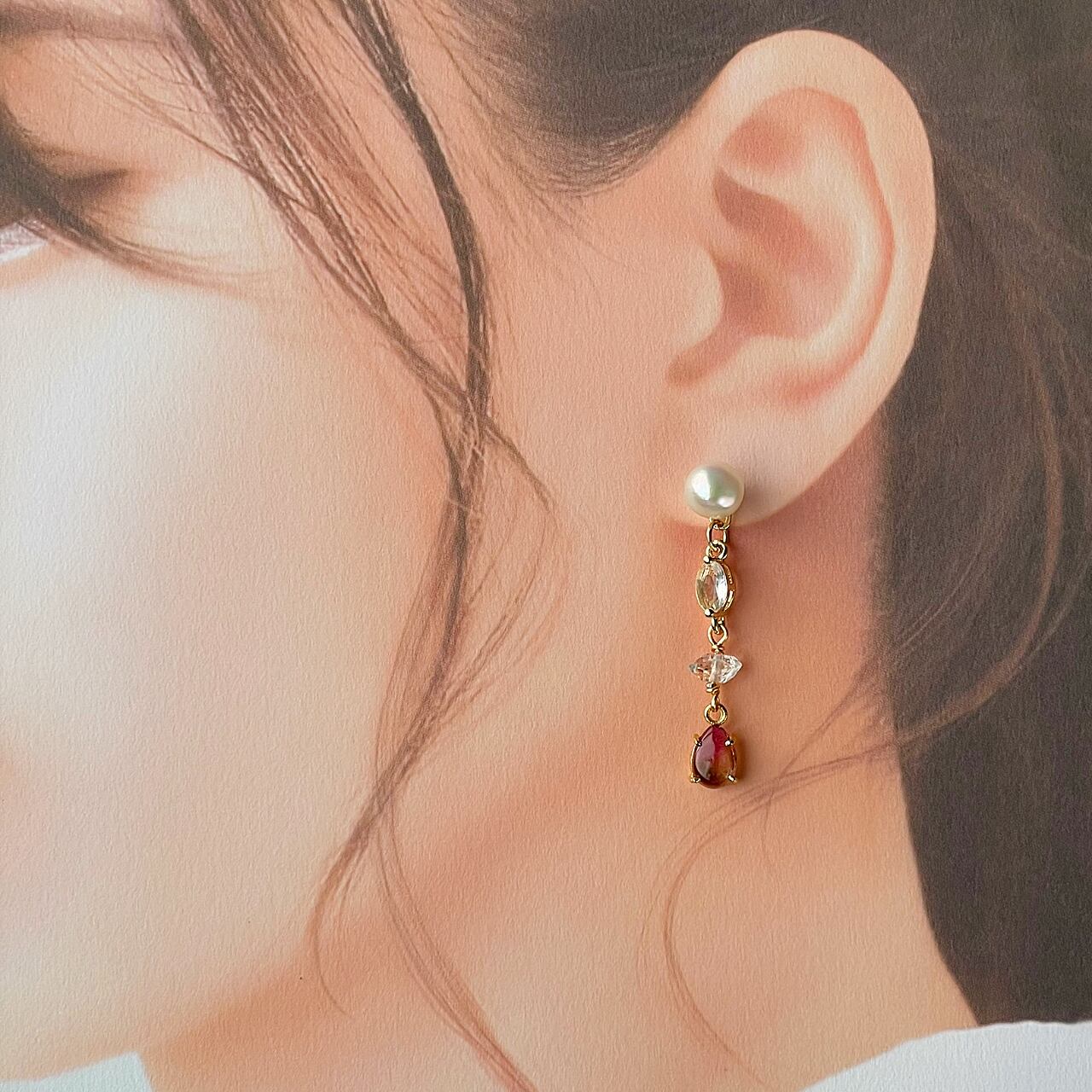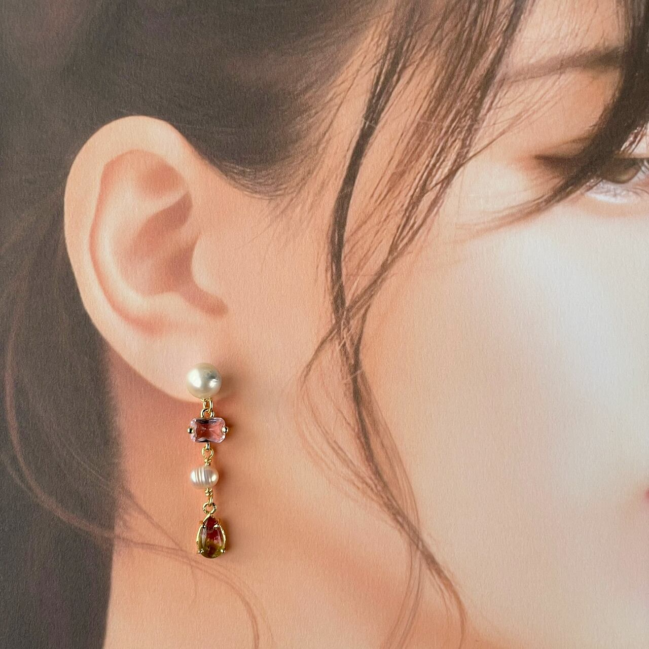 シンプルな一粒パールピアスとしても、天然石が揺れるロングピアスとしても。
