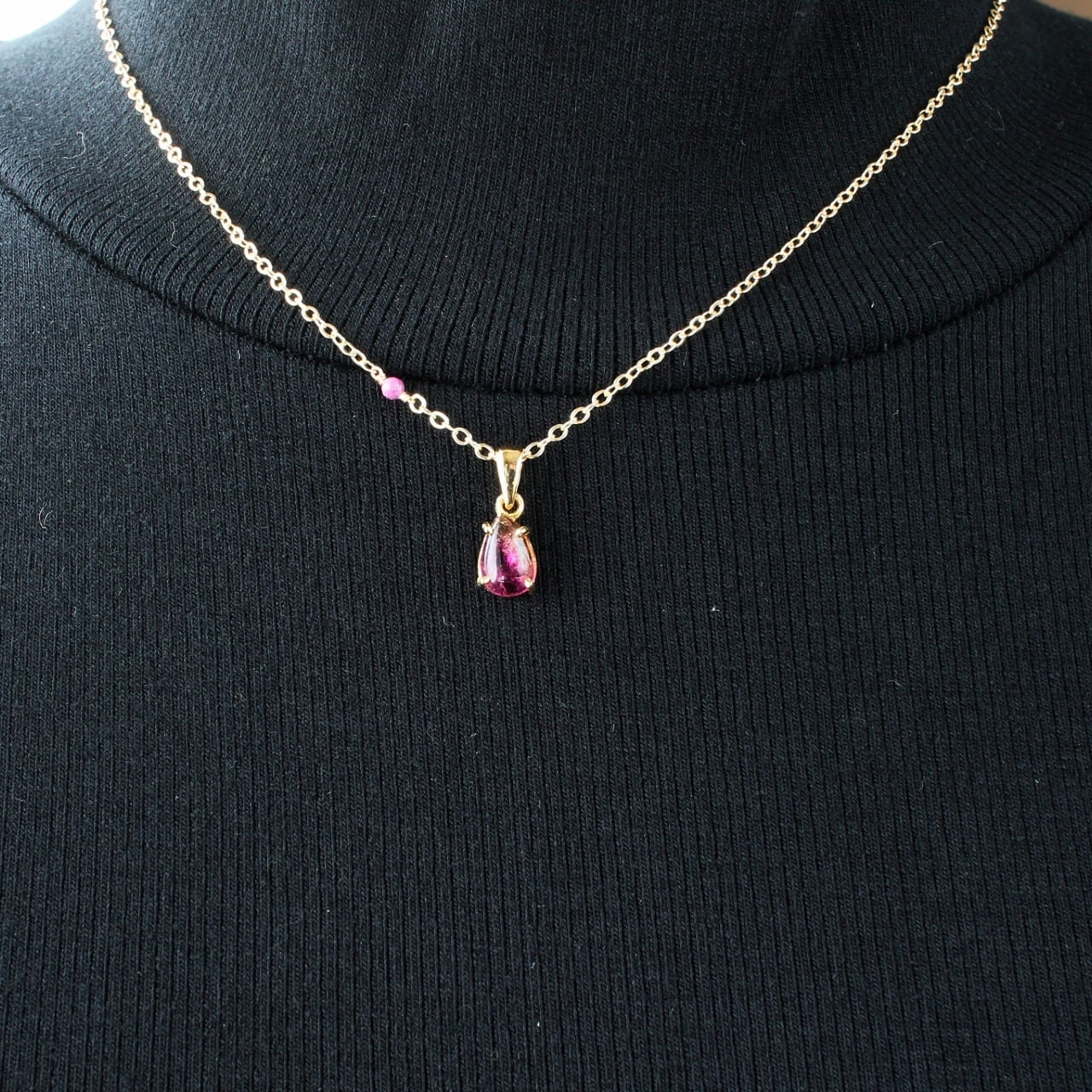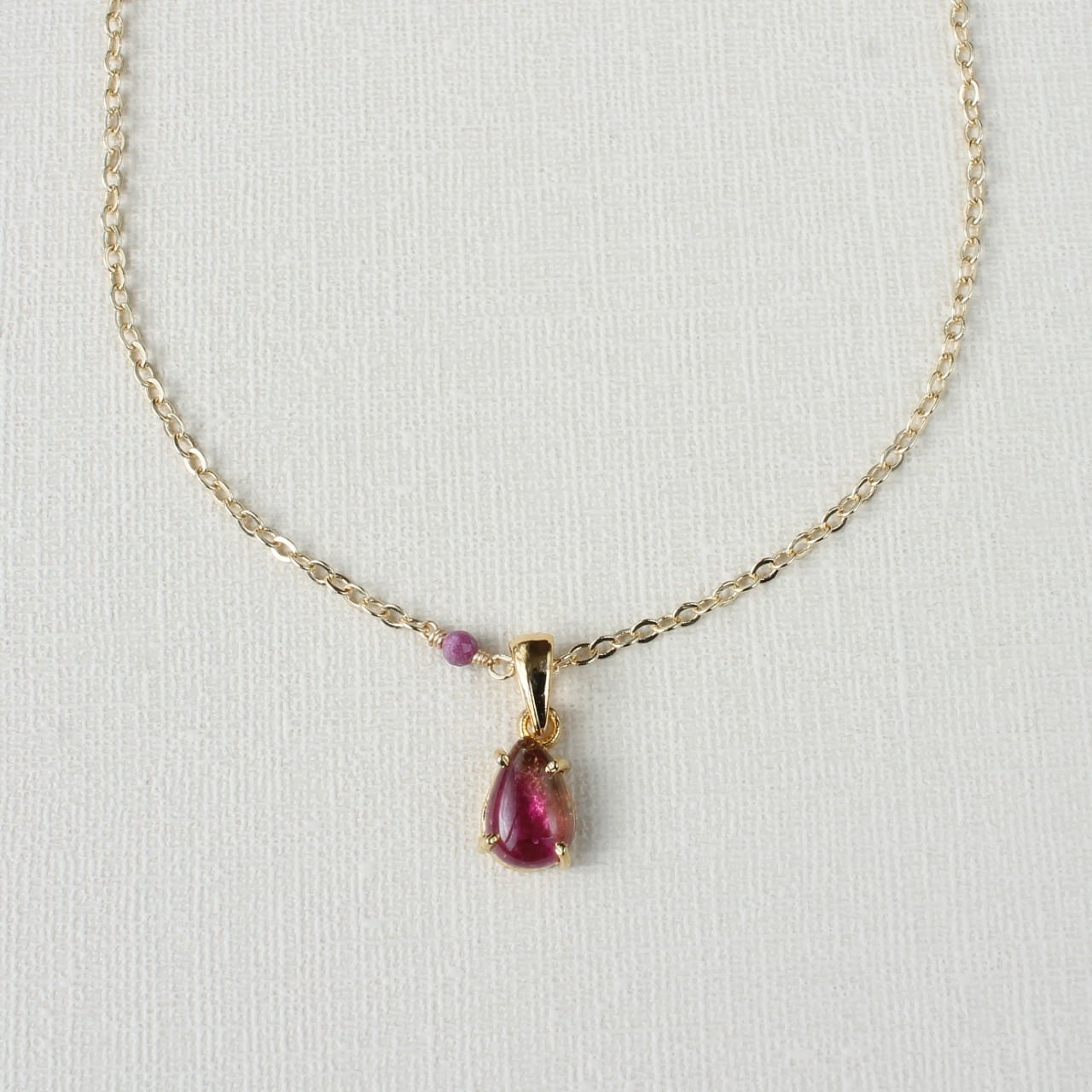 【移ろう色彩の魔法】バイカラートルマリンと極小ルビーの洗練ネックレス