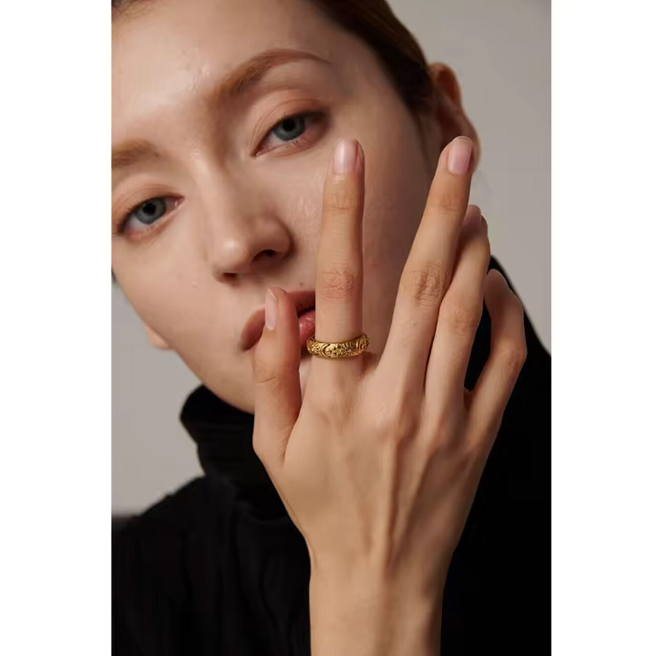 神秘的な宇宙のモチーフを指先に宿す、サン&ムーンのレリーフリング。