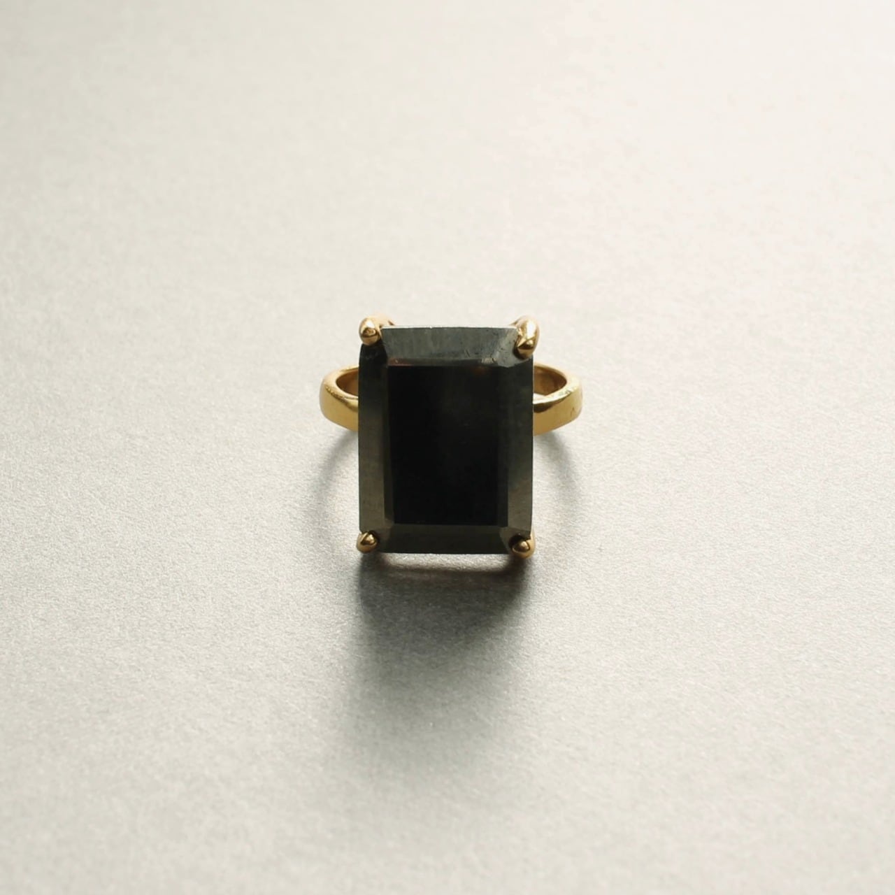 【メタリックな輝きが放つ、力強く個性的なリング 】大粒パイライト レクタングルリング