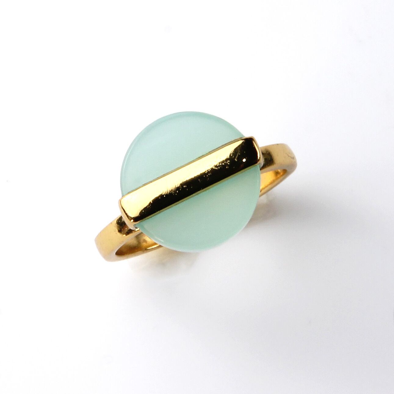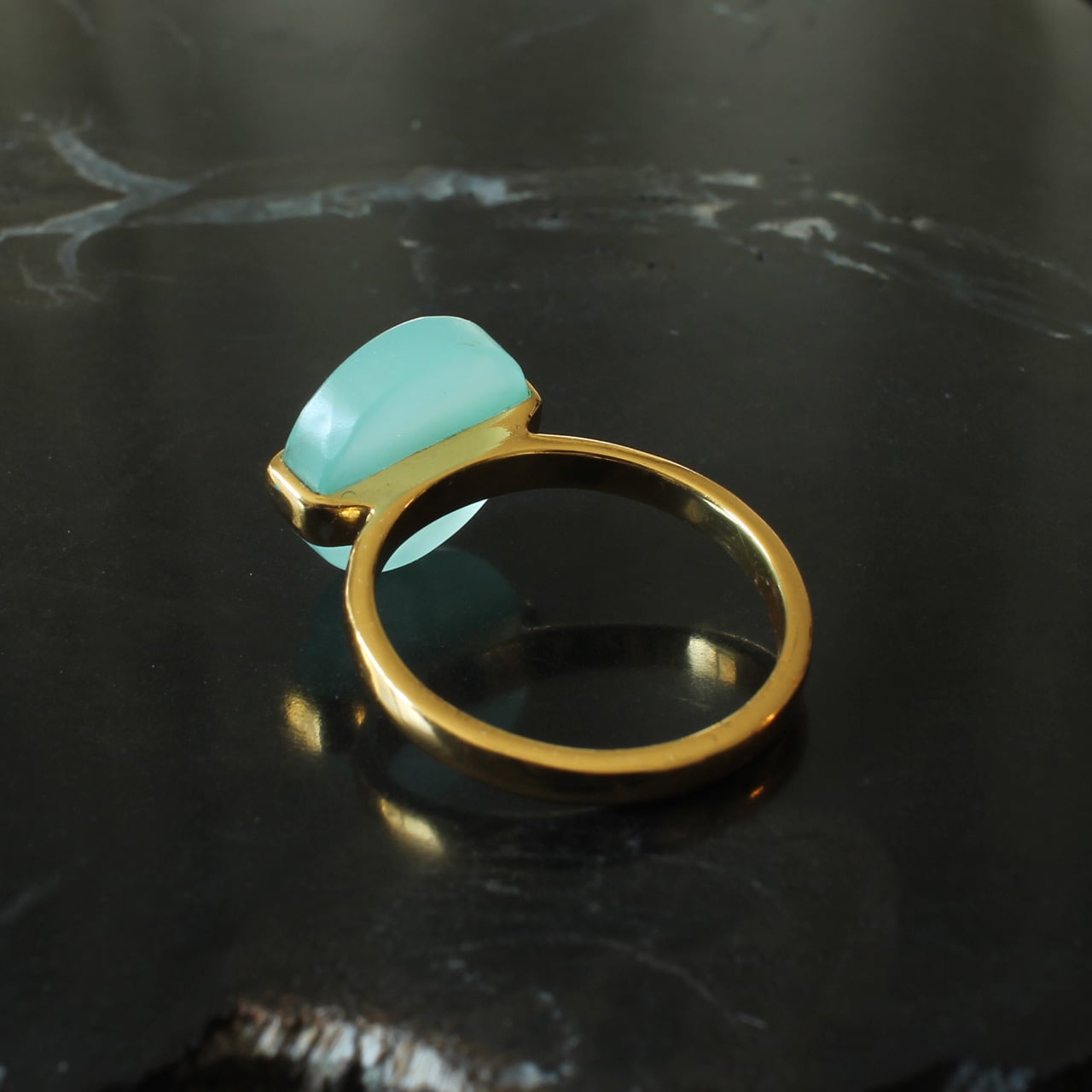 柔らかく透き通るような 天然アクアカルセドニー を、すっきりとしたラウンドフラットデザインに仕立てたリング。