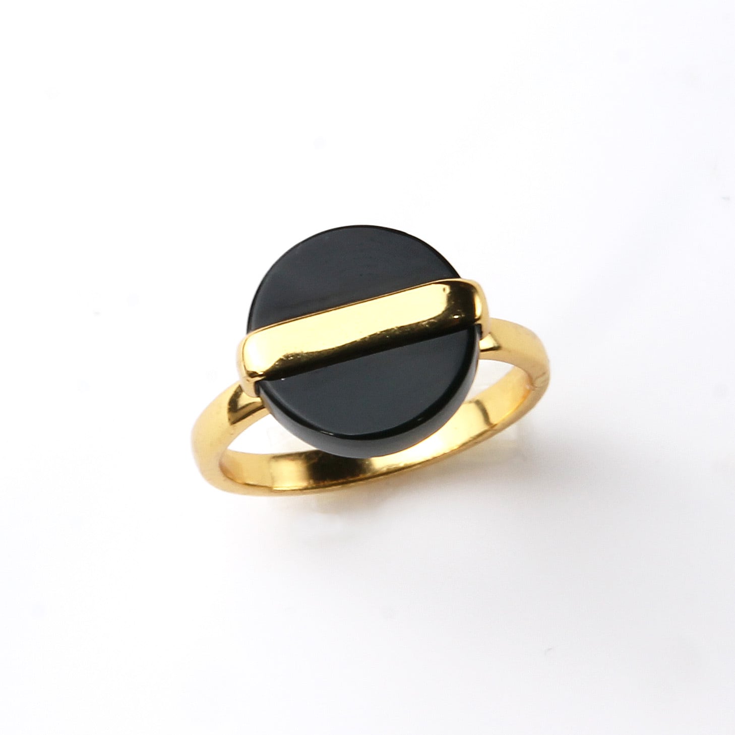 天然ブラックオニキス を、すっきりとしたラウンドフラットデザインで仕立てたリング。