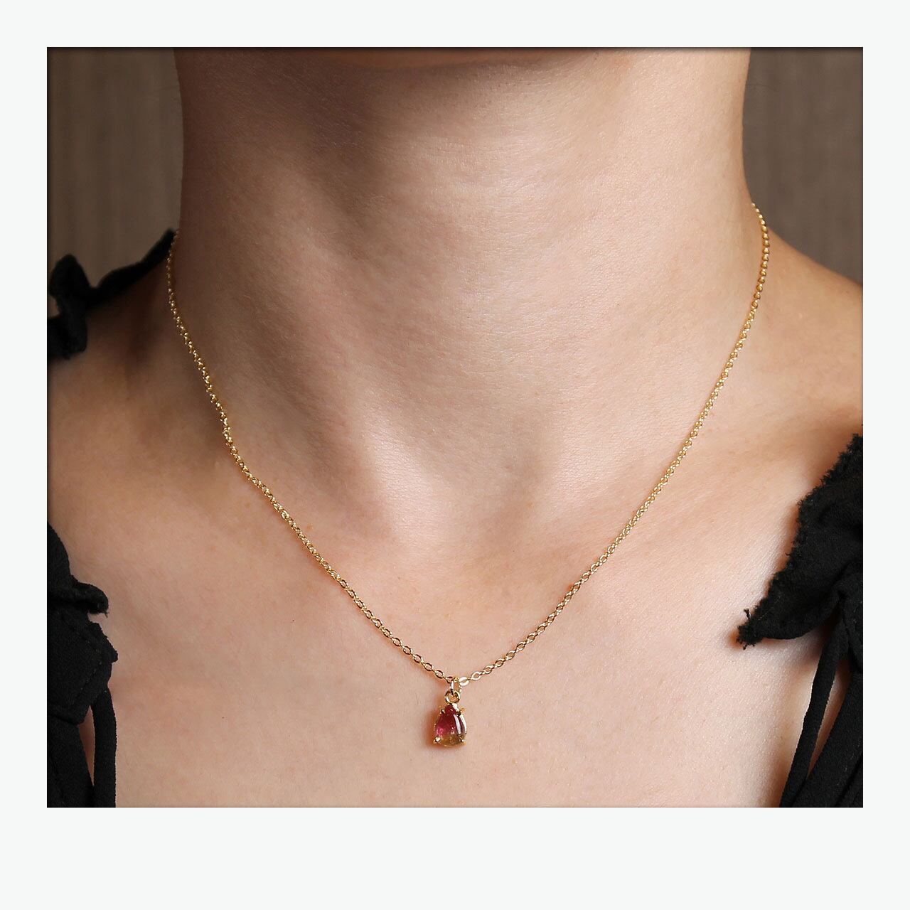 【くすみピンク&グリーン】バイカラートルマリン ドロップ ネックレスB