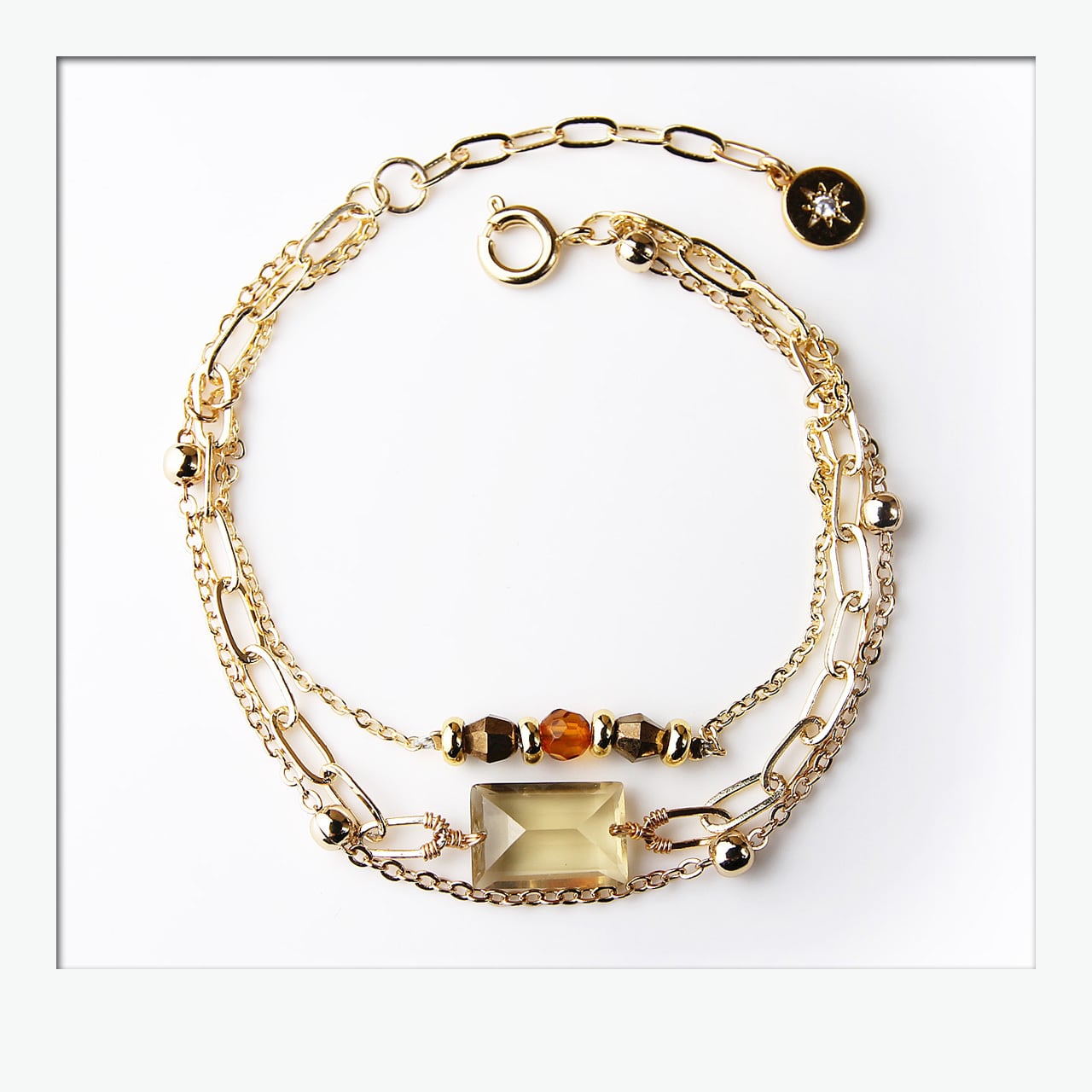 【シャンパンクォーツ】三連チェーンブレスレット