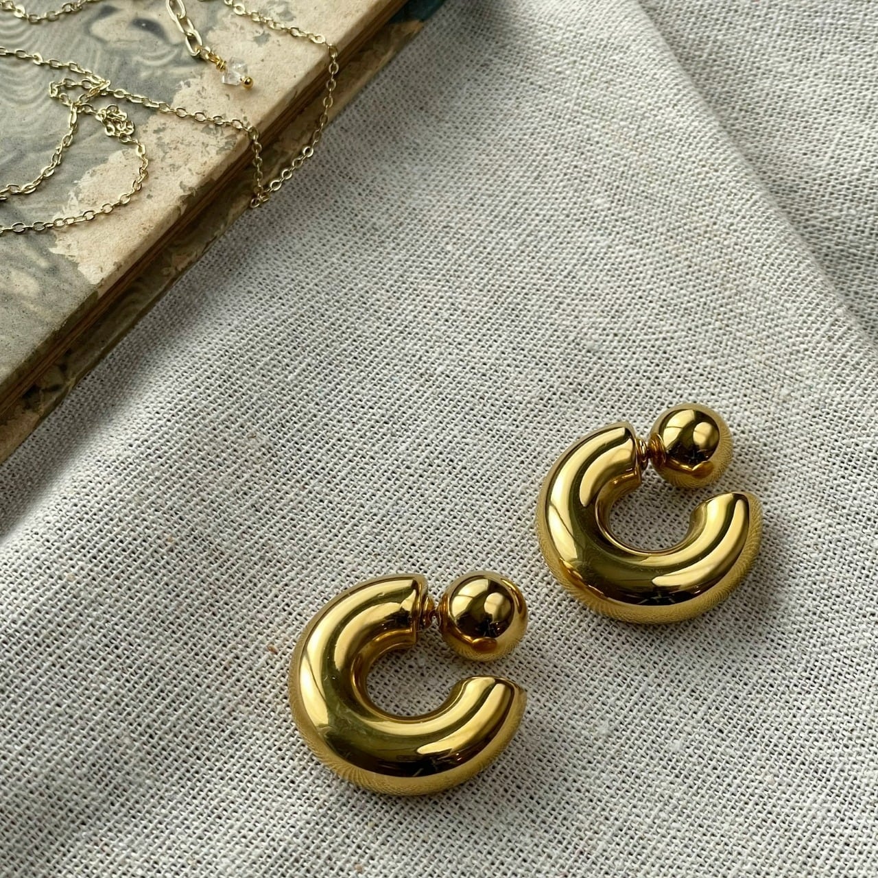 キッチュな形のゴールドカラーピアス。