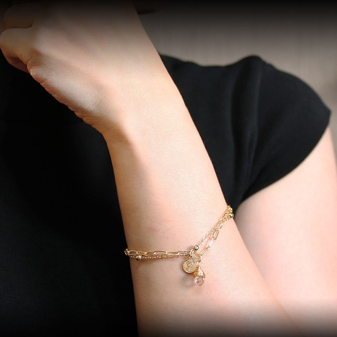 大粒ハーキマーダイヤモンドとコインチャームのシンプルなブレスレット。