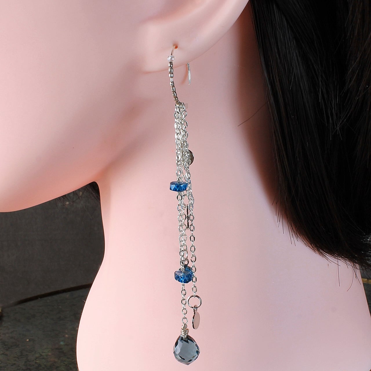 シルバーのチェーンに散りばめられたロンドンブルートパーズとミニマルなメタルチャームが、耳元で繊細な煌めきを演出します。